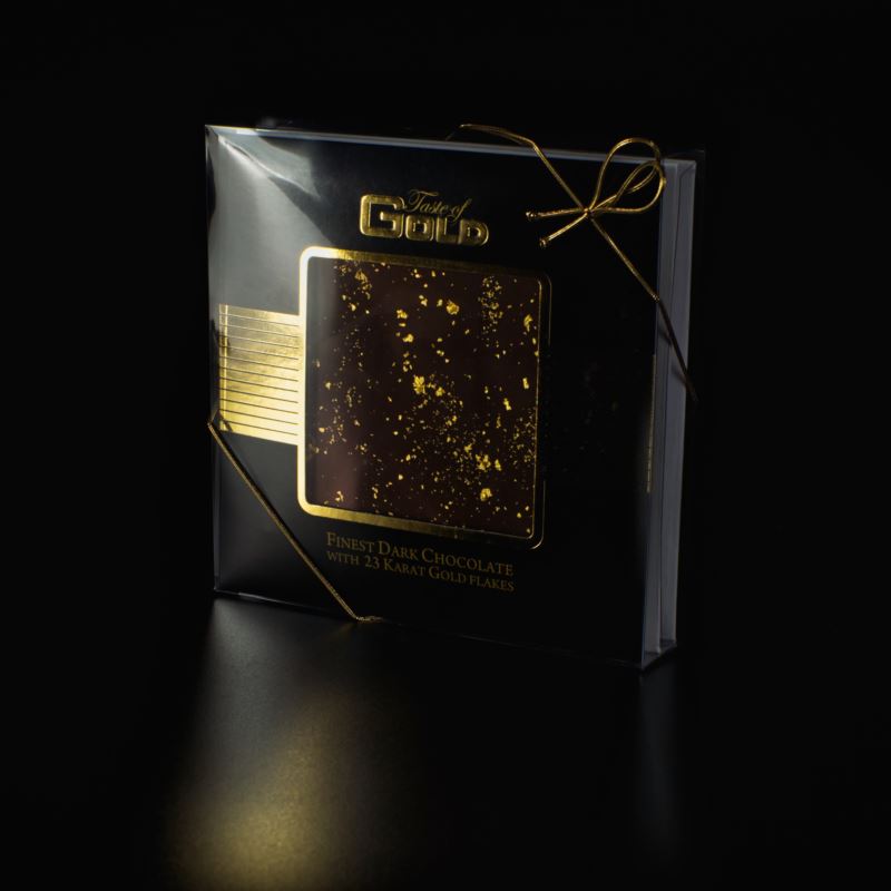 Il pacchetto premium include il nostro più prestigioso cioccolato Gold con 90 g di foglie d'oro, 80 g di cioccolato con miele e 60 g di cioccolato con tartufi.