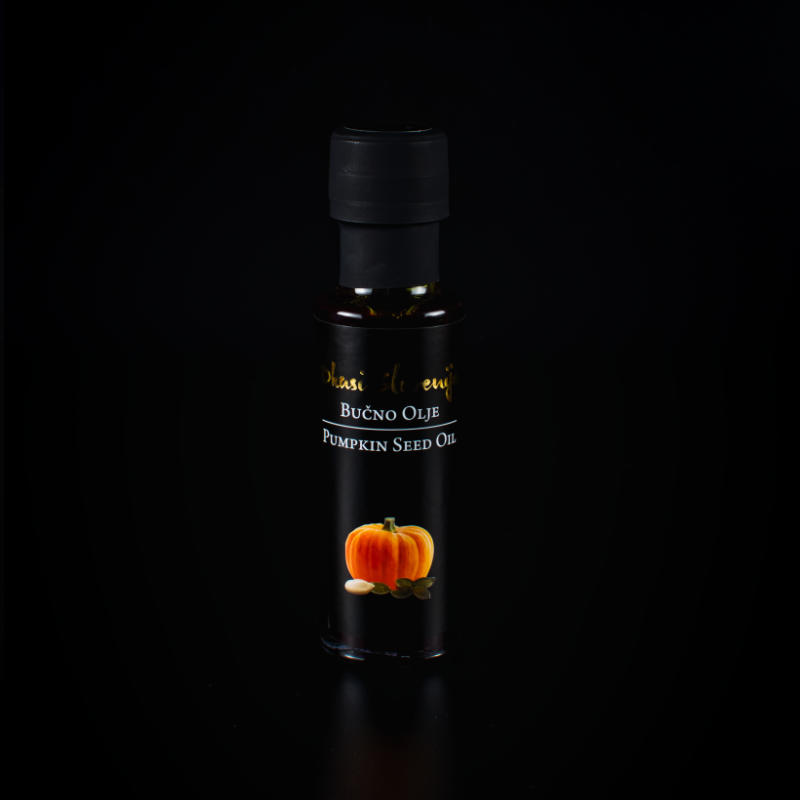 Vrhunsko prekmursko bučno olje. Izdelano iz praženih semen, zato je okus še toliko bolj intenziven. Primerno kot drobno darilce ali pozornost. 100 ml.